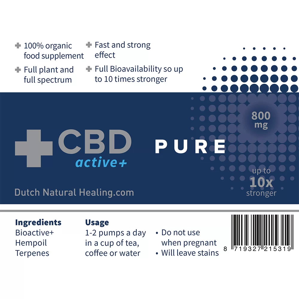 Eine einzigartige Mischung aus 10ml BioACTIVE+ und der bewährten wirksamen CBD-Paste von Dutch Natural Healing. Die CBD-Konzentration beträgt dieses Produktes beträgt 8%, aber der Effekt ist dank einer erhöhten Bioverfügbarkeit aufgrund der Zugabe von BioActive+ bis zu 10-mal stärker wie normales CBD-Öl. Eine Pumpspritze enthӓlt etwa 40 Dosen des 0,25ml CBDactive+ Mix. Die meisten Verbraucher kommen damit ca. 40 Tage aus.